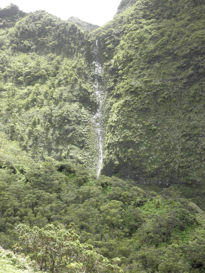 One can stop to catch one's breath during the climb, and on a good day see a waterfall dribbling down a cliff.