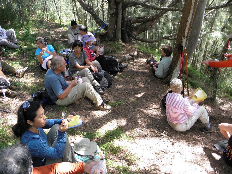 We who had done the ridge from the Nu`uanu Lookout finally caught up (11:51) with the folk who had taken the Nu`uanu Trail directly where they had stopped for lunch on the 2011 version of the hike.