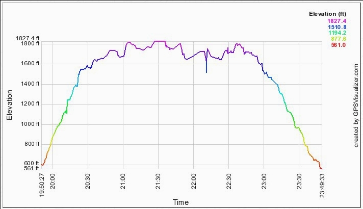 One needs to subtract 10 hours from the UST times. The slight rise and sudden dip in elevation from about 11:50am to 12:10+pm are my GPS getting bored while we were stopped for lunch.