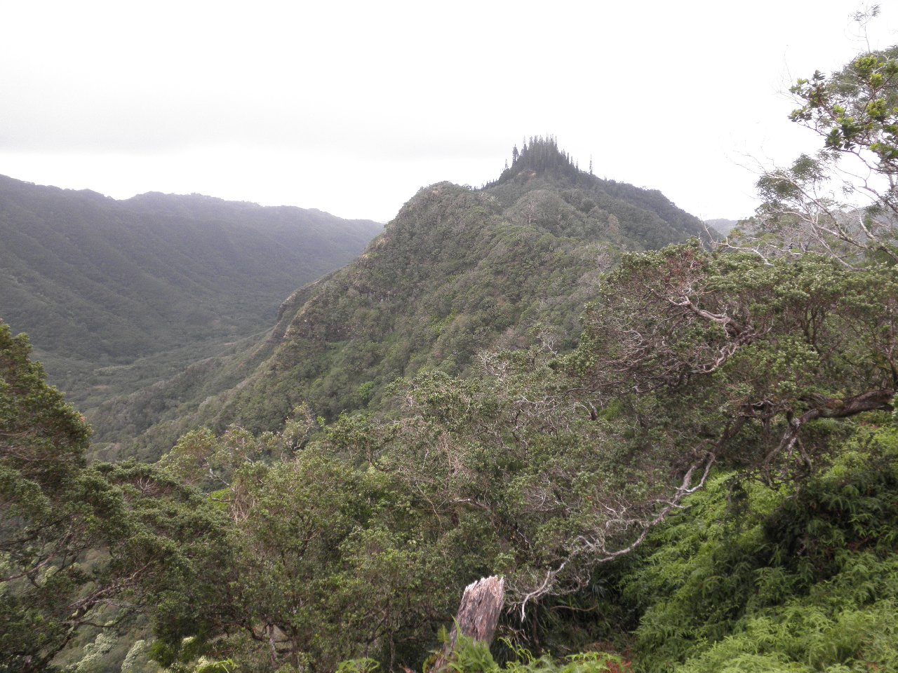 The prominent grove ahead marks the lunch spot for my group doing Kapūkakī. From there we turn down into Moanalua valley to the right.