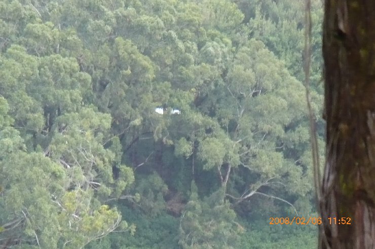 There is a point along the way for those doing the middle or long Halapepe Nui loops where one can just see, through the trees, the "Boy Scout shelter" one comes to after the first stream crossing on the Waimano Ridge hike.