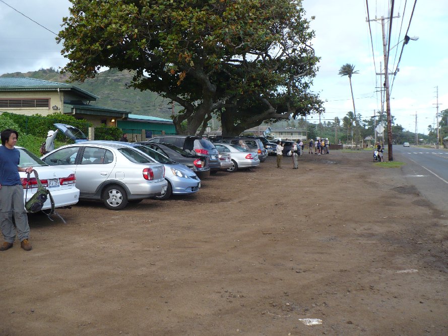 The old familiar parking area, across Hauʻula Beach Park, featuring Alex, Bill, Lily, Judith, Tom, Chet, and many others.