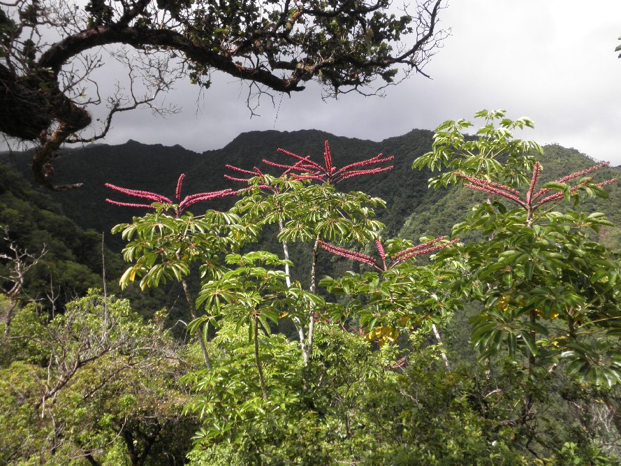 A lot of "octopus trees" or "Schefflera" (short for Schefflera actinophylla) in bloom this day.