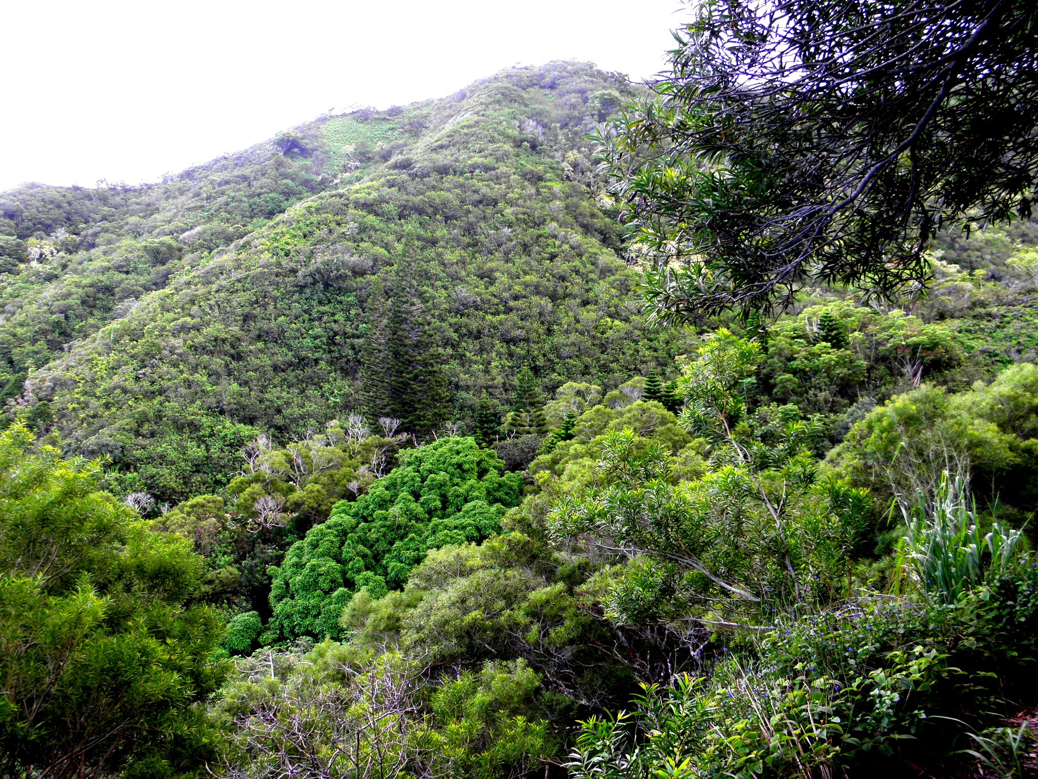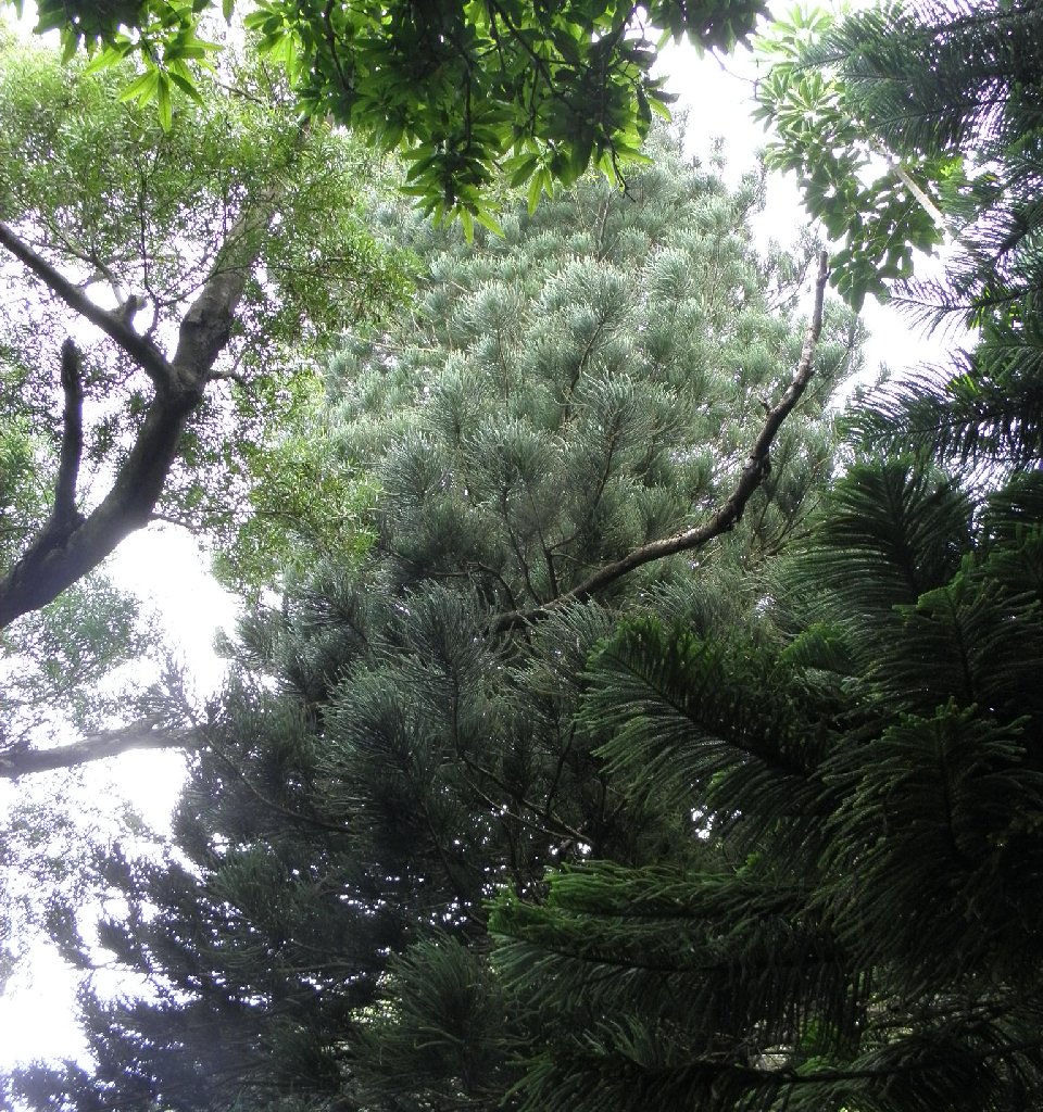 It's a bit hard to make out the big pine in the lefthand photo, due to lack of 3D and color blending in with the background. The second photo is clearer, but looking up from below is not a perfect view.