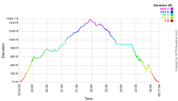 We finally stopped a half hour for lunch at 12:30 (subtract 10 hours for Honolulu time) at the "Hand of God" tree. This 900' mark is probably as high as any of the single loopers got.
