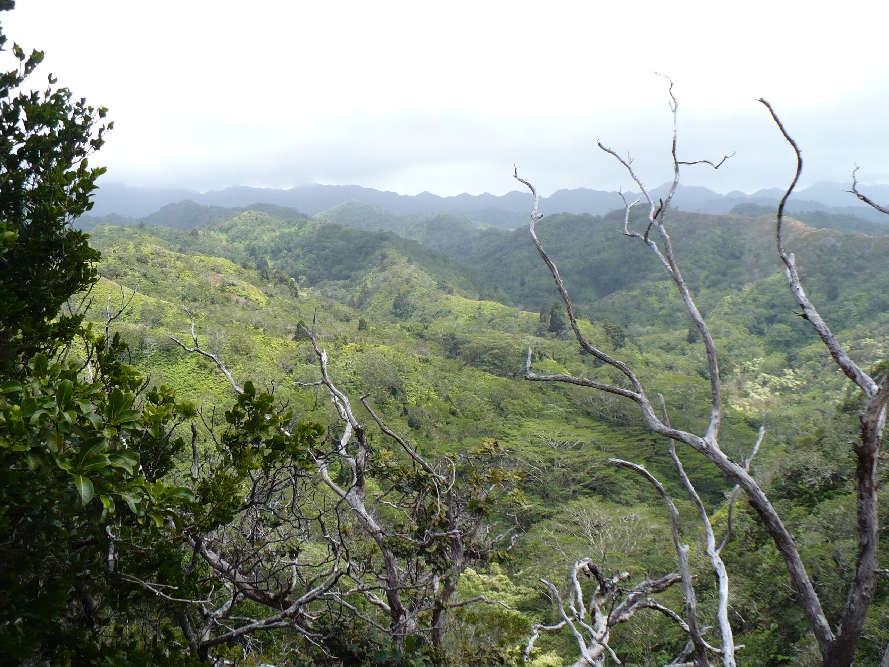 From where the "work group" stopped for lunch (about C1 on the topo map back there) I could see a few of the main group heading down "C3"; hard (= impossible) to see here, on the ridge just above the center of this photo.