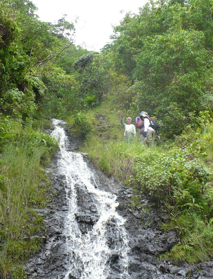 There are lots of ropes along the side where it's steep and slippery; I've never used one, finding enough natural handholds, but if I keep getting older I might.