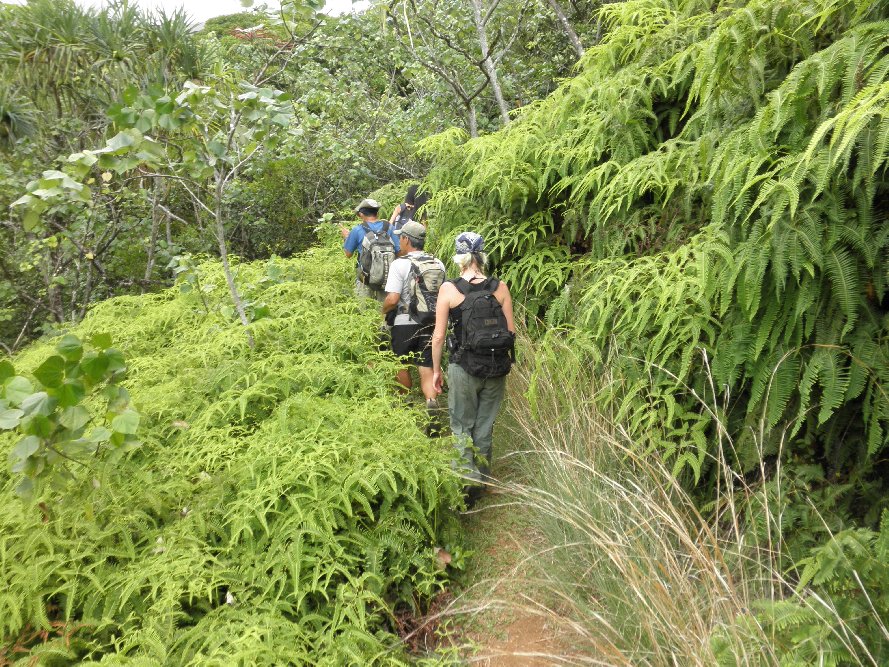 In 2009 and 2010 we started out on Nakoa Trail, one of many ways to start a hike at Kahana. Here we are at 9:53, just getting started on the 2010 version.