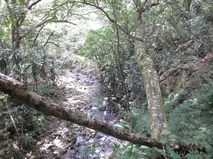 A view of the stream below, 2010; we would be crossing it soon (way above the dam this time).
