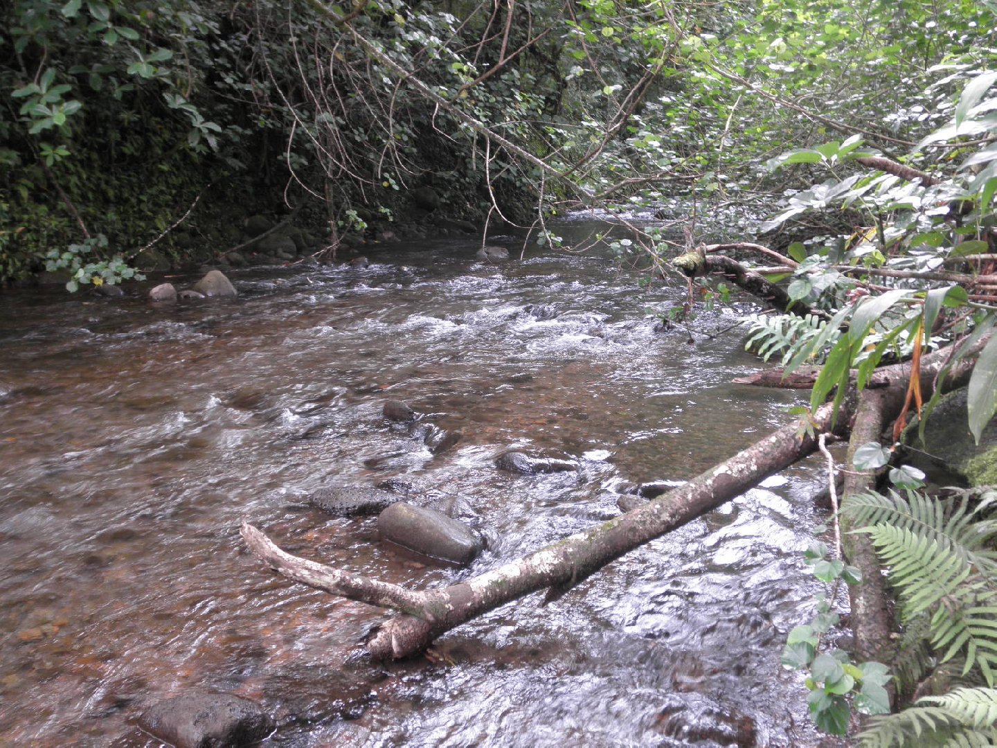 The stream was flowing swift and clean..