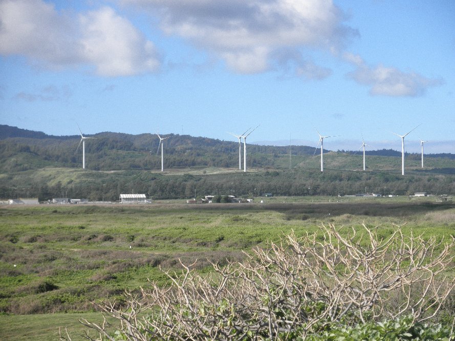 Two theories about why the windmills weren't spinning. Not enough wind, or, more likely, they just hadn't been started up yet.