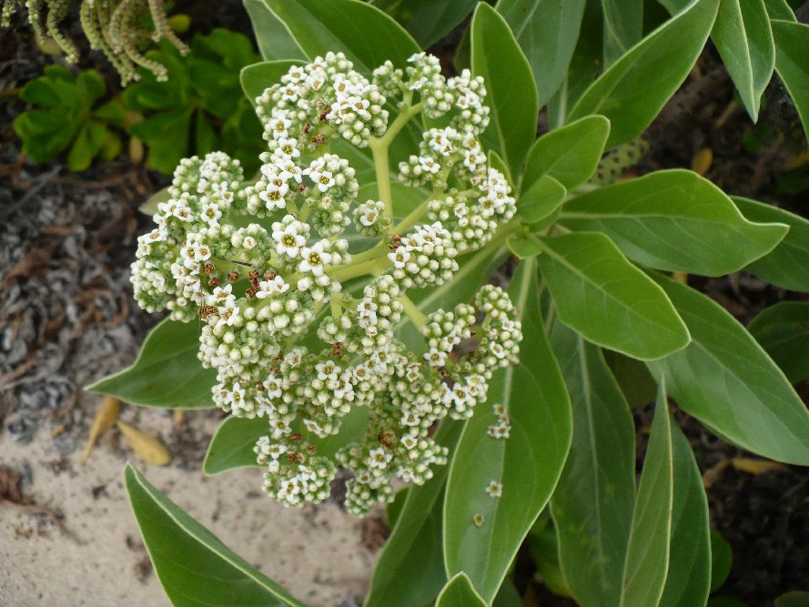 Obviously closely related to hinahina, the tree heliotrope tries to make up in quantity for quality when it blooms.