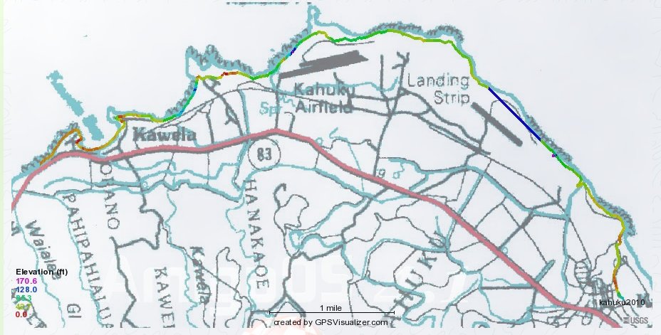 over the Pacific once I got half way around Kawela Bay. In this 2010 version, the only bizarre error is that 2/3 of a mile