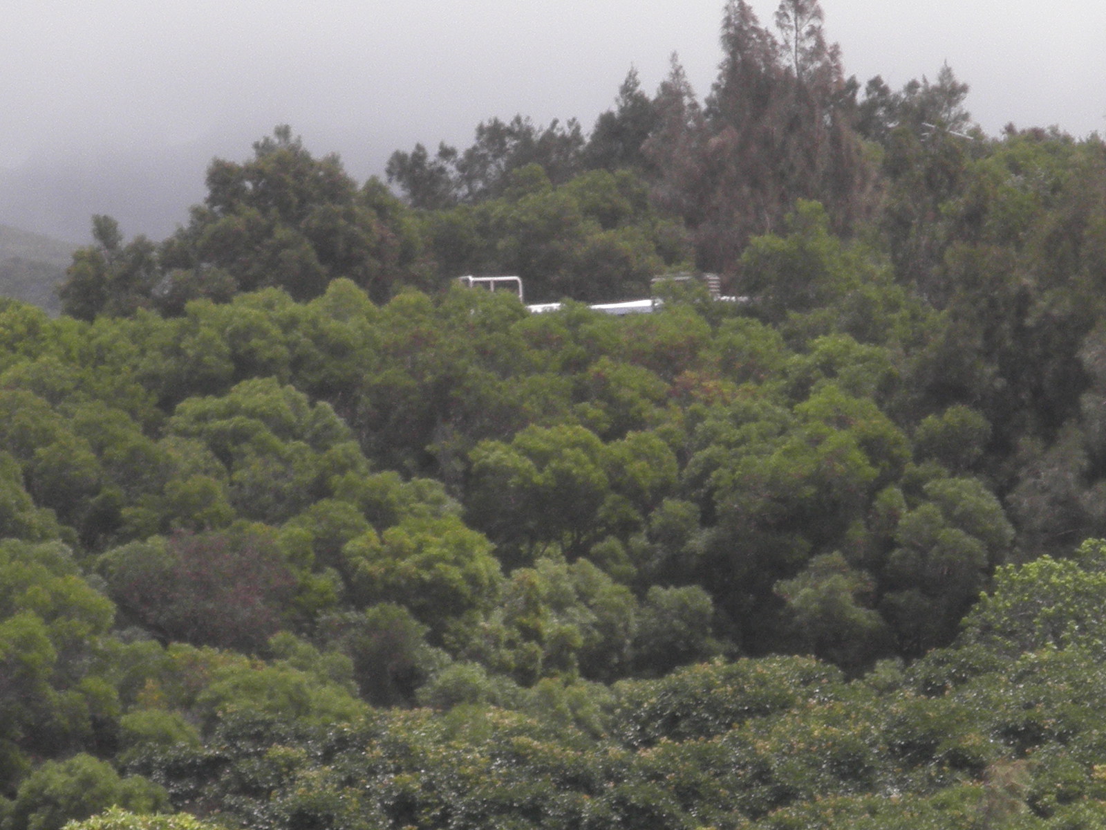 There in the distance, the top of the watertank a little way up Wiliwili Nui trail.