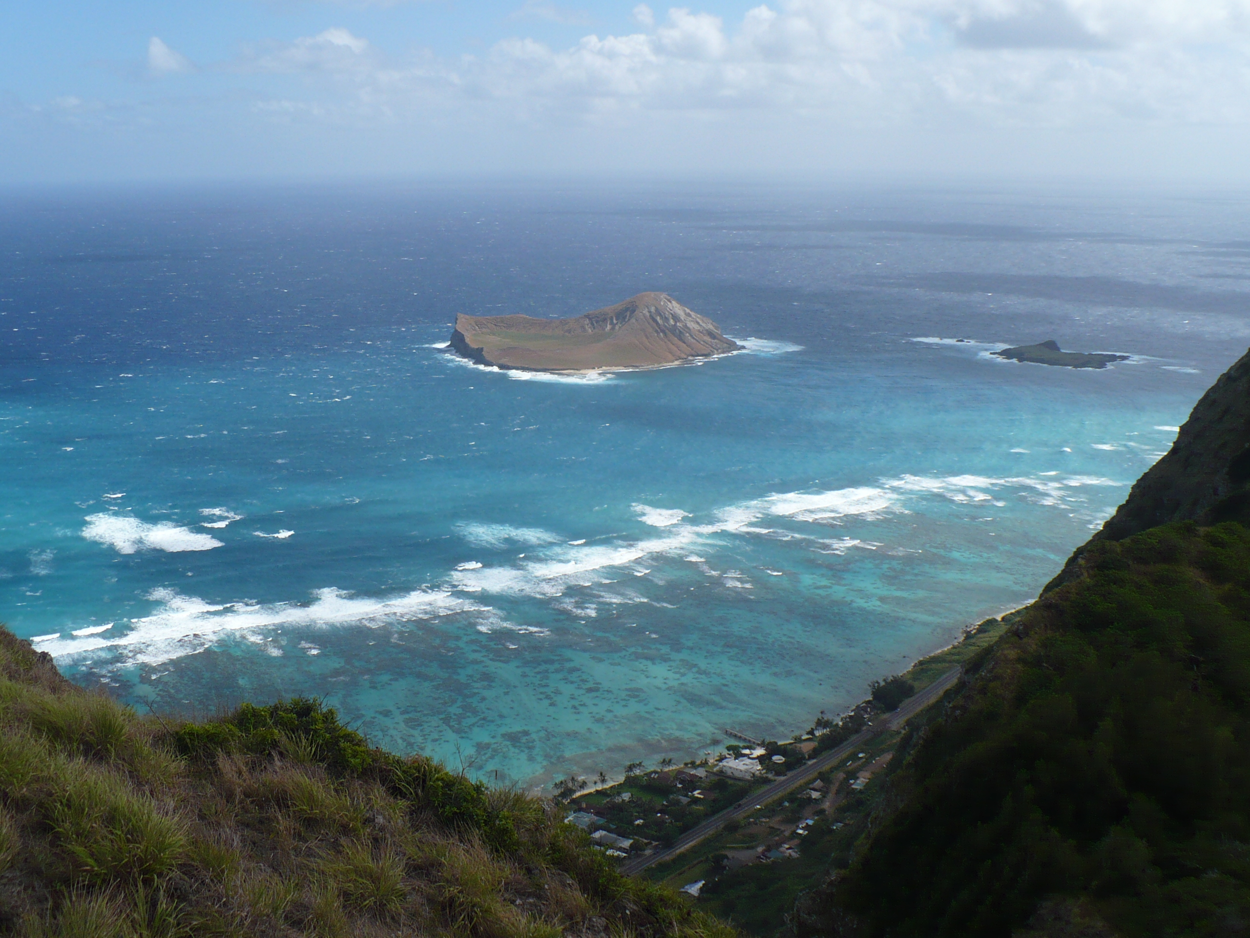 A view of the ocean from the lunch spot, including Moku Mānana.