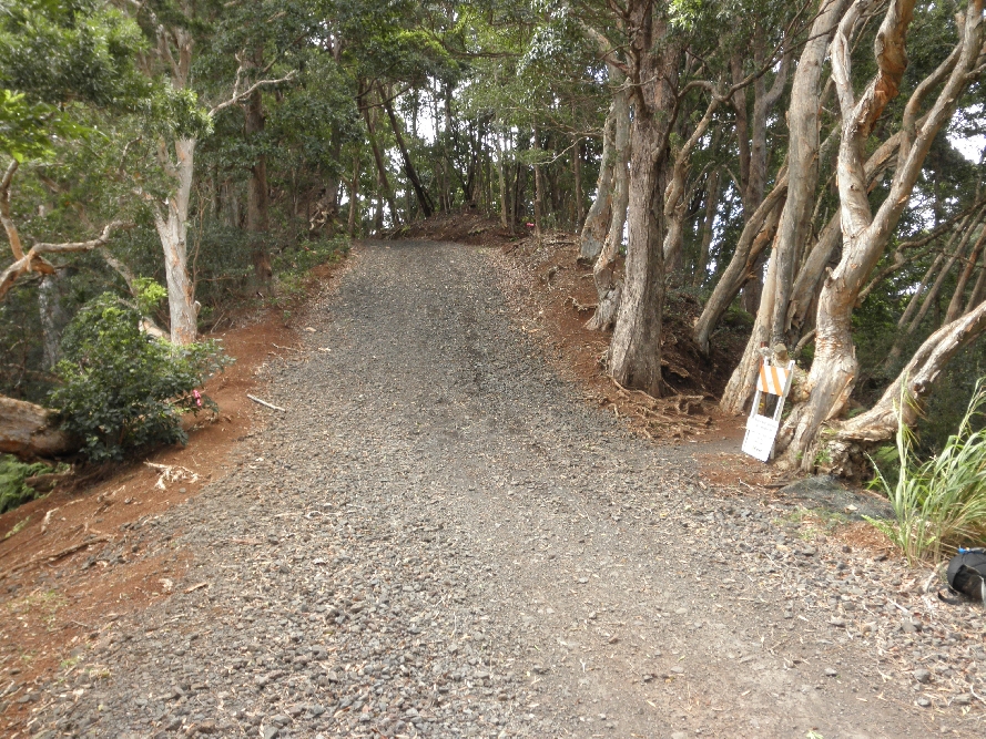 For anyone wanting a shorter hike, with no mud, it's "Hike A," turn right and up this gravel road, back to the paved one, and back to the cars.