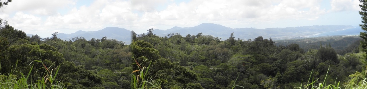 I was using a new camera and tried its in-camera panorama function for the first time. It almost worked--the two right-hand images fused; it shouldn't take much practice to get it right.