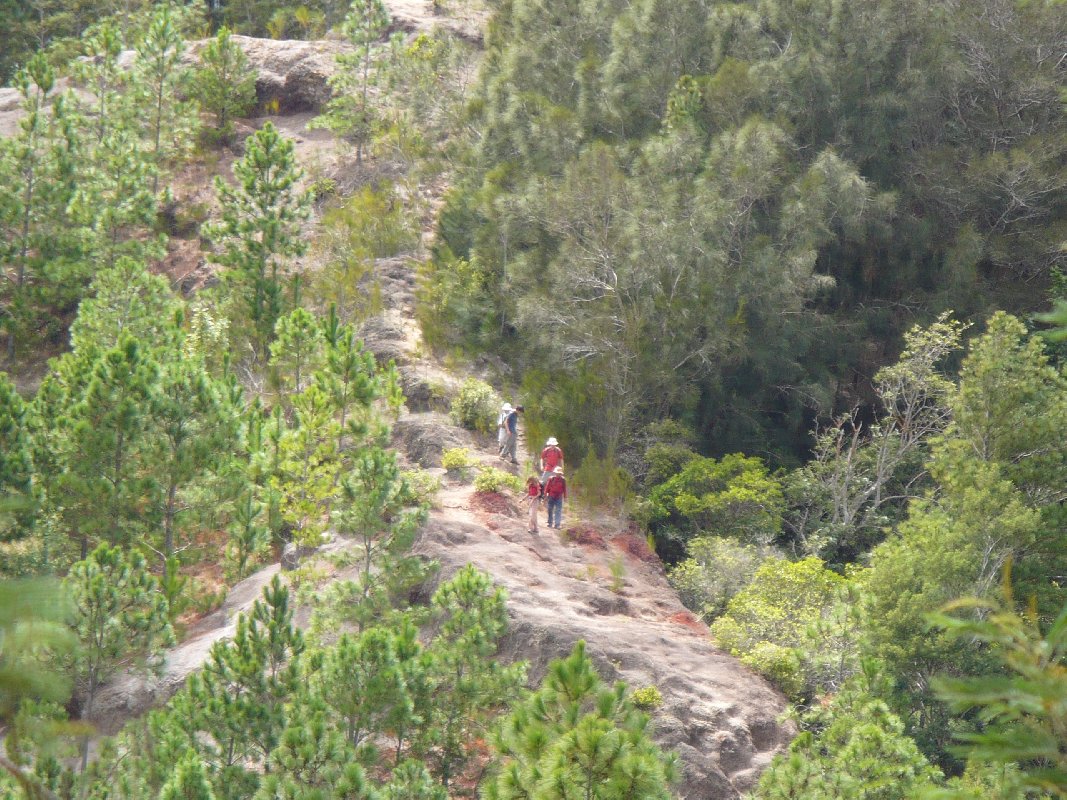 Debbie, Miles?, David, Alex, and Toyoko? approaching the old Keālia trail end lunch spot. It's 1:24, October 14, 2009.