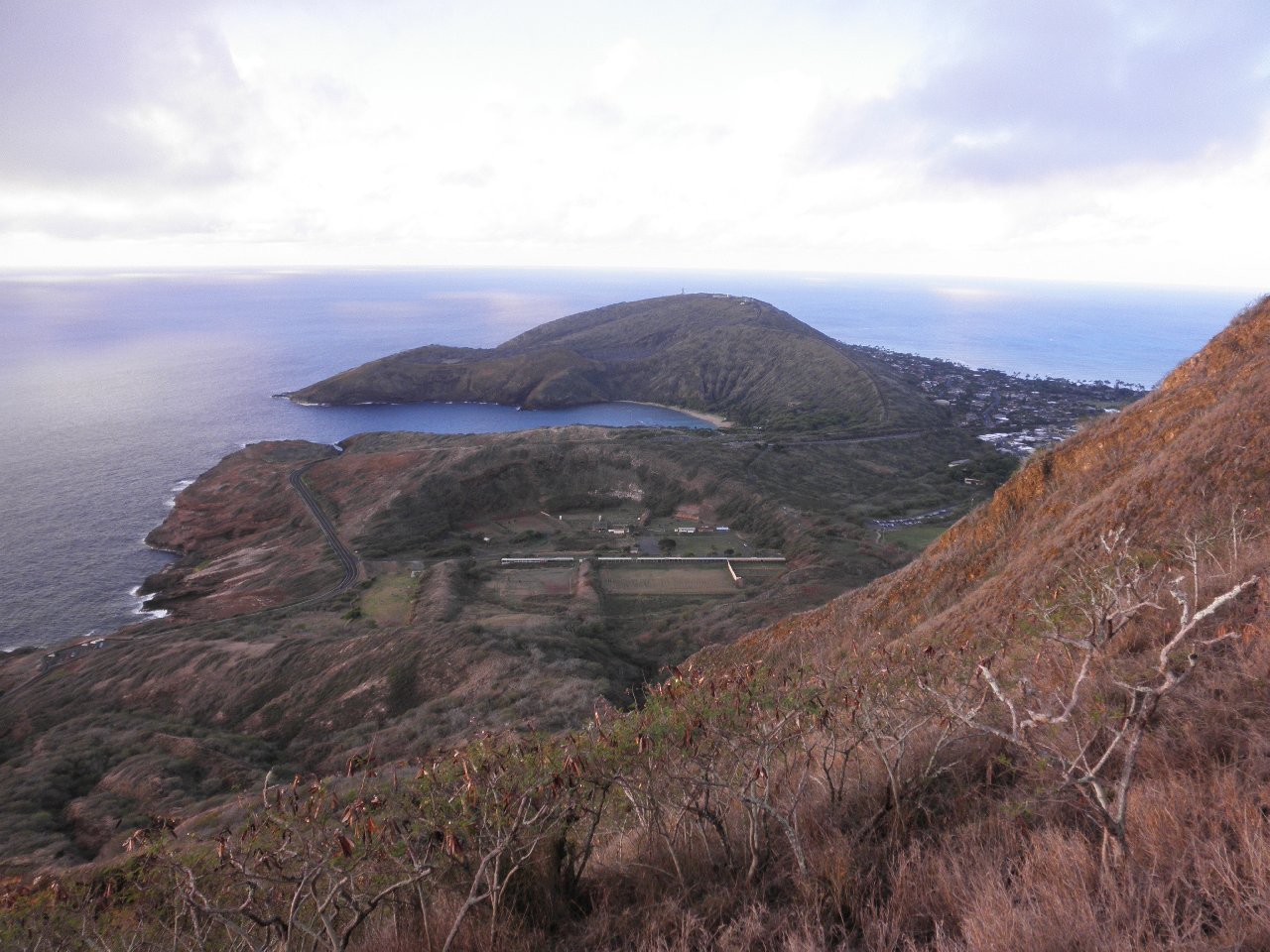 just beyond Hanauma Bay. The apparent caldera this side of the bay contains a shooting range. Most of us cross it later in the hike.