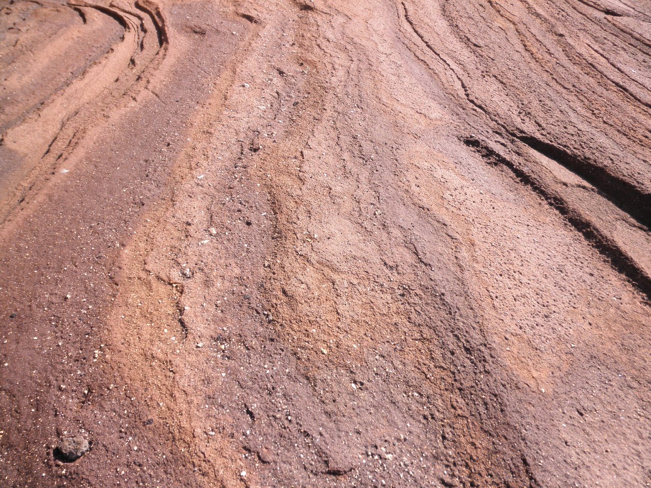 It looks like sand, maybe it was sand, but it doesn't take footprints or blow in the wind. Quite hard.