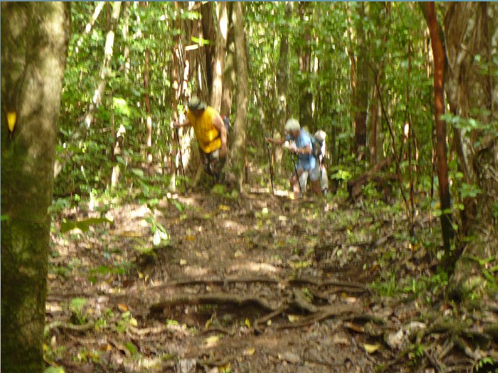 Paul and Peg on an early uphill. (Look what the humidity did to the picture! :-)