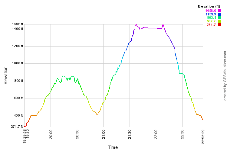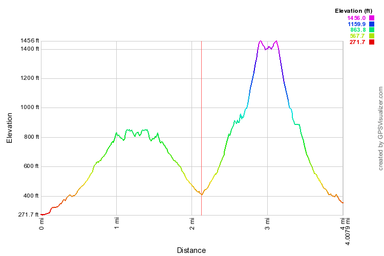 the end by about 440 feet. I had seen ribboned but not well-maintained trail dropping down from the last high point, but opted not to take it.