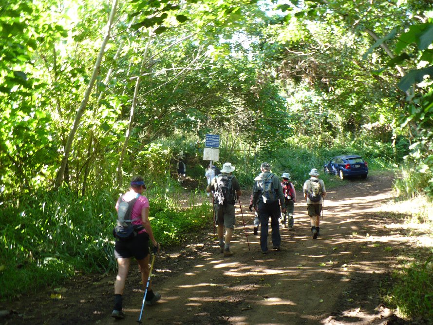 I started catching up with some at 10:10. Diane, Joe(?), Loren, Brian(?), and Helen just ahead of me. Nobody bothers to read the sign that says "NO TRESPASSING" unless you have a permit.