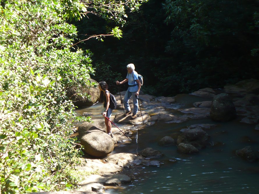 No one in the group I reached the falls trail with was interested in coming down. I thought I might turn out to be the only one, but as I started the side trail to the top of the falls, I heard voices, and by 11:40 two other hikers arrived.