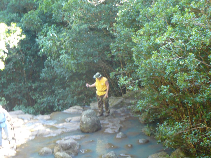 Two minutes later, along came Paul, to be the subject of another of my blurry pictures. Later John Hall would join us, then two strangers came and went to the top of the falls. When we all got back to the main trail, there was Clem starting down.