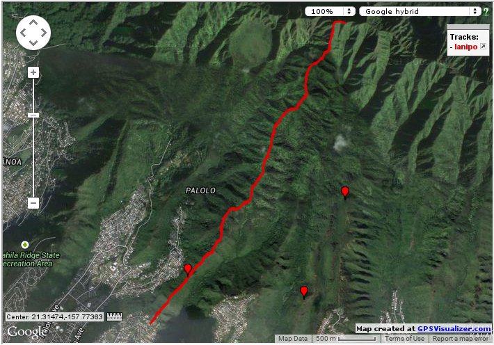 turn towards Lanipō itself after once reaching the Ko`olau summit. The first time was 1999-11-03, my first