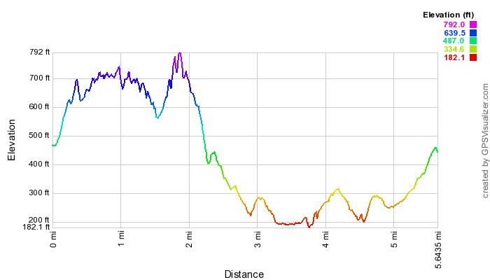 Kelvin had almost exactly the same map, but came out with about 6.4 miles!