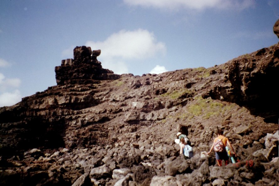 On occasions, the waves at Makapuʻu sooner or later suggest that turning back and hiking up the ridge instead of the tide pools might be a good idea. Here is one early instance of that, on 2001-12-19