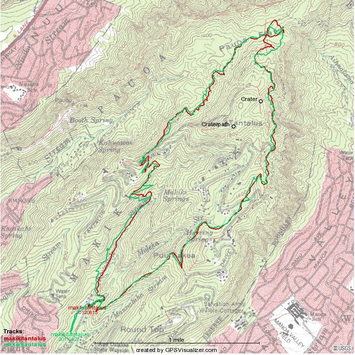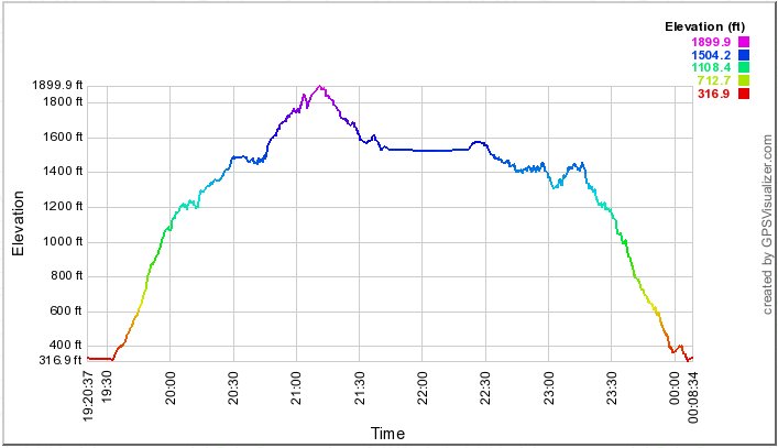 This graph shows elevation vs time. Subtract 10 hours for Hawai`i time. Straight lines of 30 minutes or more likely show lunch stops. |