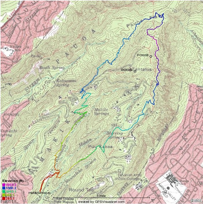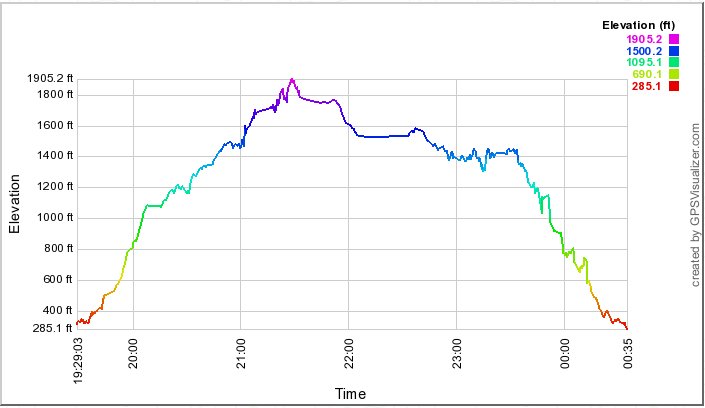 This graph shows elevation vs time. Subtract 10 hours for Hawai`i time. Straight lines of 30 minutes or more likely show lunch stops. |