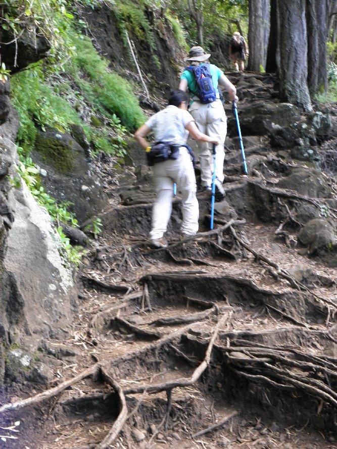 Chelsea follows Christy up the rooty trail in 2011. In 2012 I failed to get a photo of a woman running down this part, barefoot.