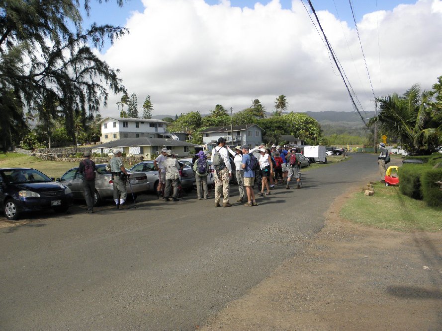 Many of us are gathered already in anticipation of hike instructions. Namely, two or three possible hikes, one a loop in the valley and quick off to the party; the others, ridge hikes, either to the summit (at least one taker) or to the falls (seven or eight of us). |