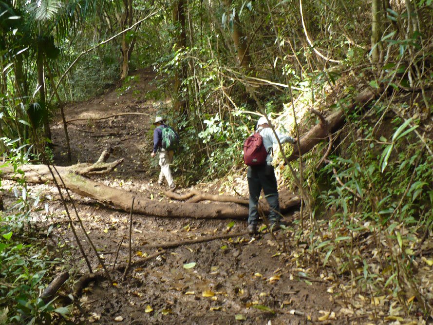 Miles and Bill went out ahead to make sure the trail was marked with ribbons. They left muddy footprints.