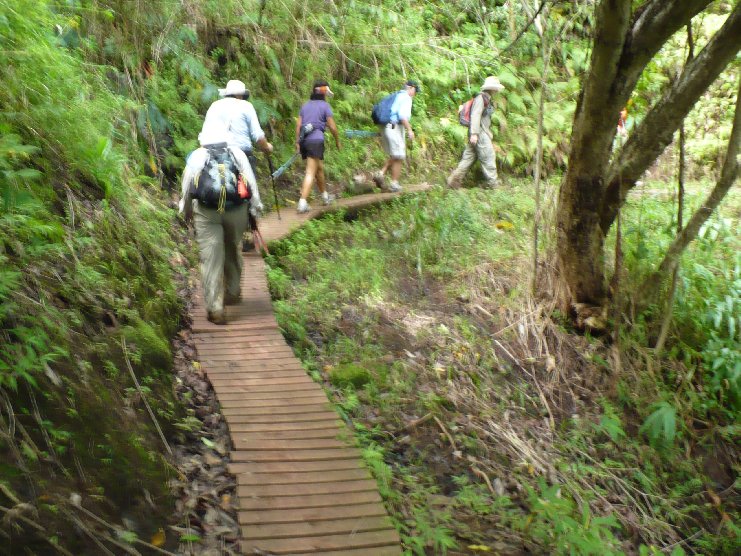 Fuzzy or not, I wanted to keep this picture of the neat Demonstration bridge, that Judith, possibly George, Dee, Dave, and one I don't recognize, are crossing. And there, through the fork in the tree, Dawn. Or could that be Carren?