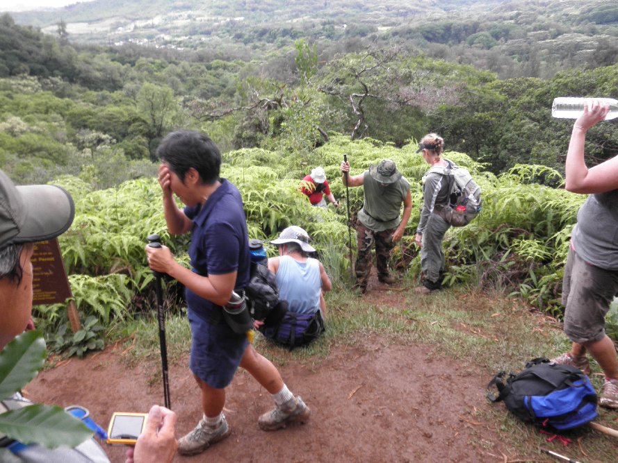 Pausing at the Maunawili Falls/Maunawili Trail intersection, 2010-07-14
