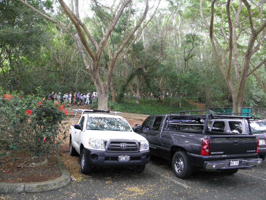 This one starts from a very convenient parking lot which the Ko`olau Golf Course folk kindly let us use.