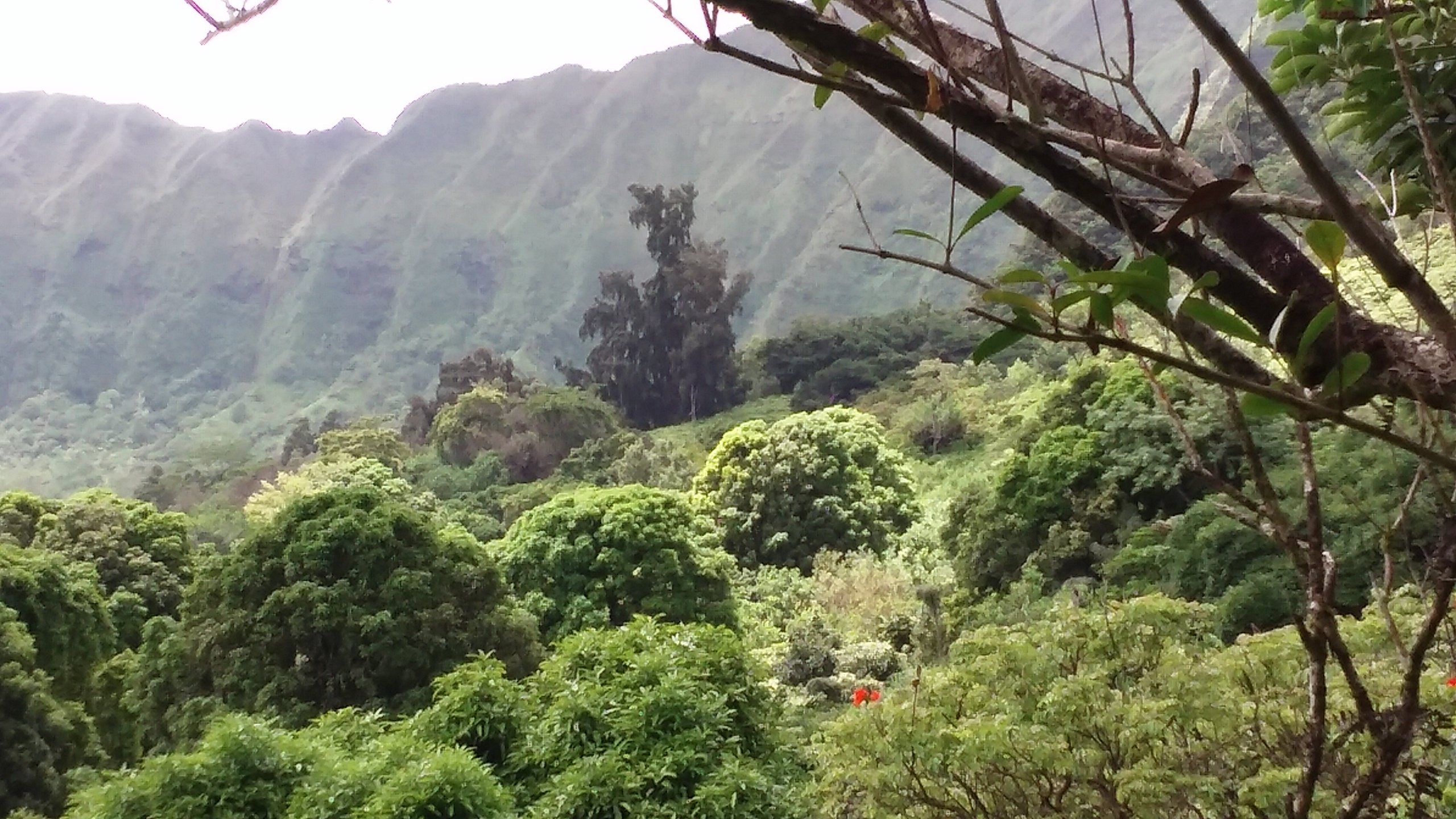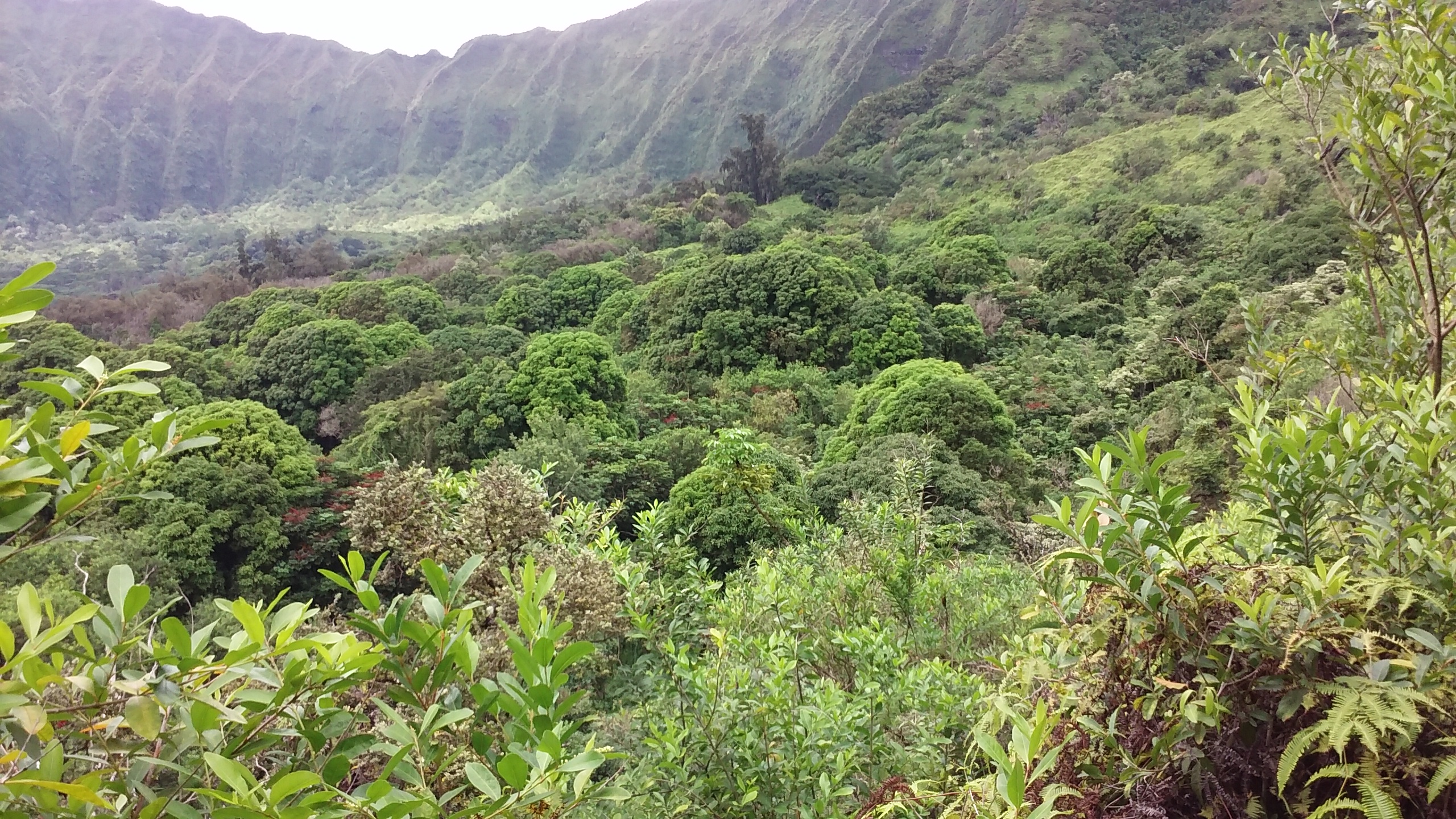 one can look off to the left and see the ulu paina (ironwood grove) that is our frequent lunch spot and turnaround point. Nice to see it not all that far away. |