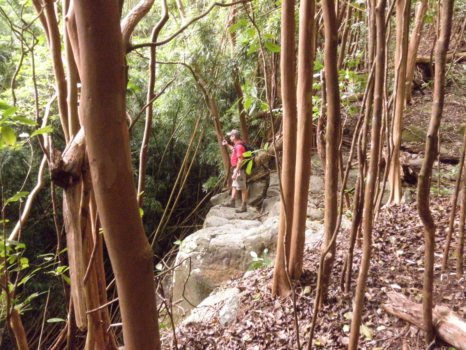 Perhaps the highest waterfall on the hike, maybe not. I went farther upstream without finding any others. When I got back here, I noticed a crowd having lunch downstream at the head of another wailele.