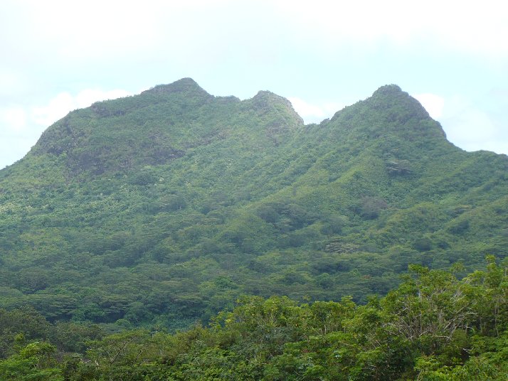 A photo of Olomana from the side, peaks 1, 2, and 3, reading left to right.