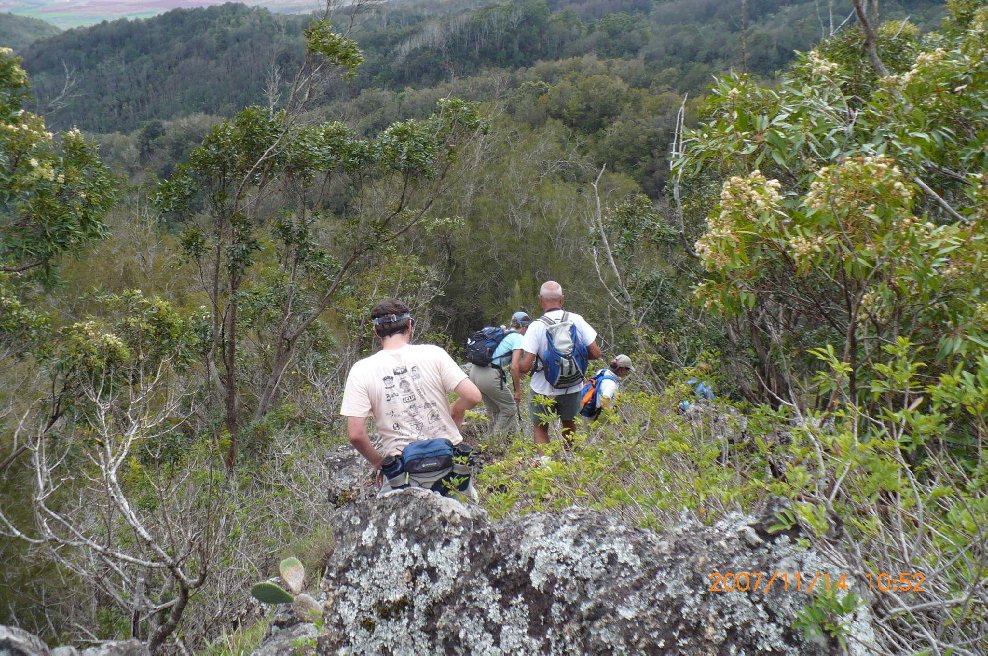The last part of the rock is just a short hop down to the trail. I'm pretty sure most of those on the trail here, though, went around the right where the rope was.