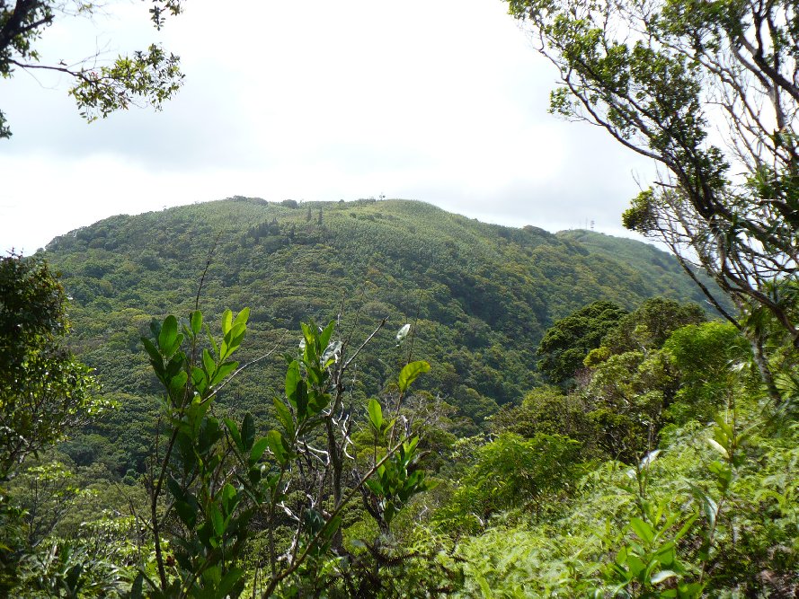 Puʻu ʻŌhiʻa from atop some other puʻu. (11:14; about 20 minutes from the 2009 lunch stop on the Nu`uanu Trail, whence many headed back.)
