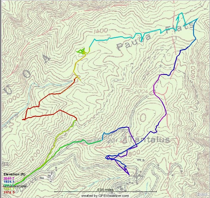 According to my Magellan Explorist 500, which lies a lot (for one thing, Pat and I did NOT cross Tantalus