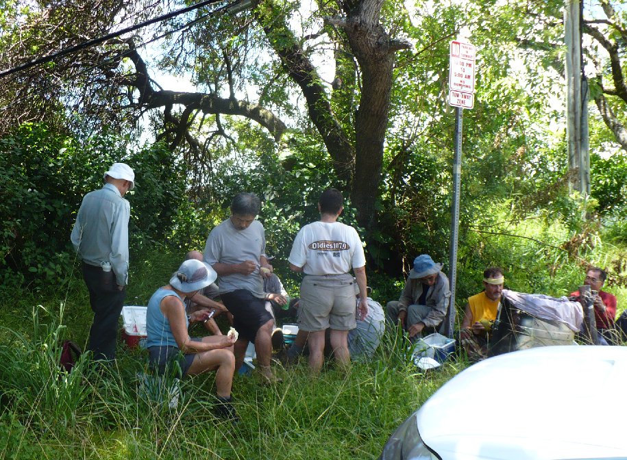 Bill, Tina, Brian (forehead), Kelvin, Kelvin, Lucy, Vince, Paul, Miles, and two unidentifiables begin resting up for their next hike.