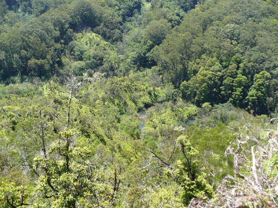 OK, now I know 2007 was a clockwise hike. I took this photo after leaving the pool. The stream flows from middle right, makes a backwards U turn, of which two bits are seen here. The pond of the preceding photos is smack in the middle of