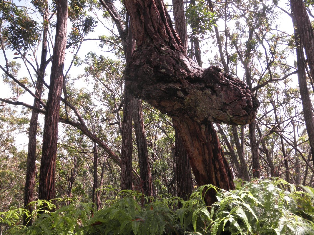 There were three way ahead of me on the 2013 hike, so no spiderwebs. I did have time to notice things, like wonder what the heck was this tree trying to do.