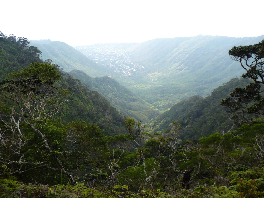 Heading down, it was easy to spot a good viewpoint that I had missed on the way up. Too bad it was so hazy.
